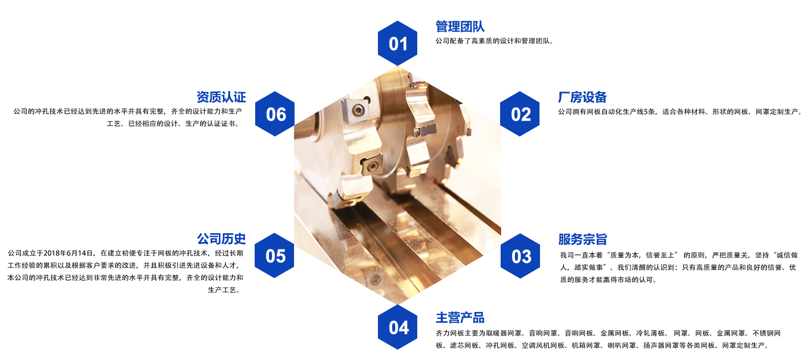 慈溪市齐力网板有限公司主要生产:取暖器网罩、音响网罩、音响网板、金属网板、冷轧薄板、 网罩、网板、金属网罩、不锈钢网板、滤芯网板、冲孔网板、空调风机网板、机箱网罩、喇叭网罩、扬声器网罩等各类网板、网罩。